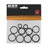 Ремкомплект для вилок от производителя RST. Своевременное обслуживание и ремонт амортизирующих вилок необходимо для продления ресурса и полноценной работы, так как от этого зависит комфорт и безопасность райдера. Данный ремкомплект является необходимым при полом ТО и обслуживании всех узлов амортизирующей вилки. Комплект заключает в себе набор резиновых колец, уплотнений и сальников. Для качественной установки дополнительно необходимо смазать специальной силиконовой смазкой сальники.